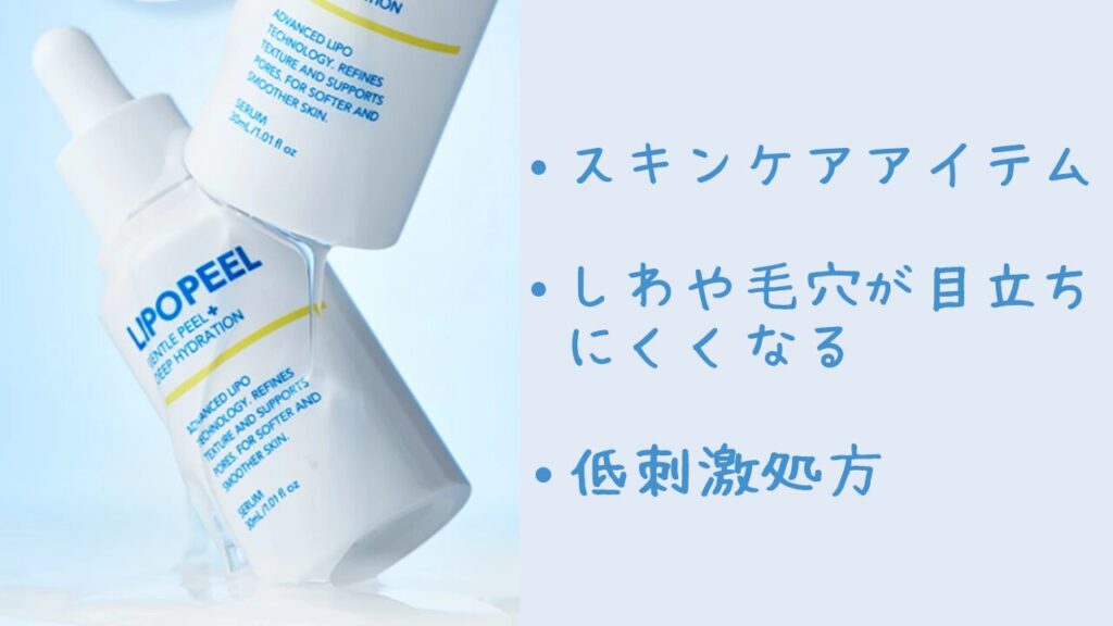 リポピールは肌悩みを解決する美容液です。ピールケアと美肌ケアを同時に行うことができ、しわや毛穴が目立ちにくくなるようです。また、朝夜毎日使える低刺激の使用になっているようで、敏感肌でも使えるのがうれしいポイントですね!