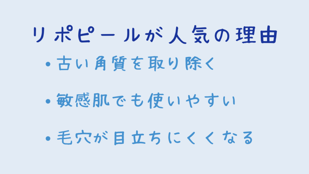 でもリポピールは、角質を整えながら同時に潤いを補給する設計になっているので、敏感肌や乾燥肌の人にも使いやすいとされています。